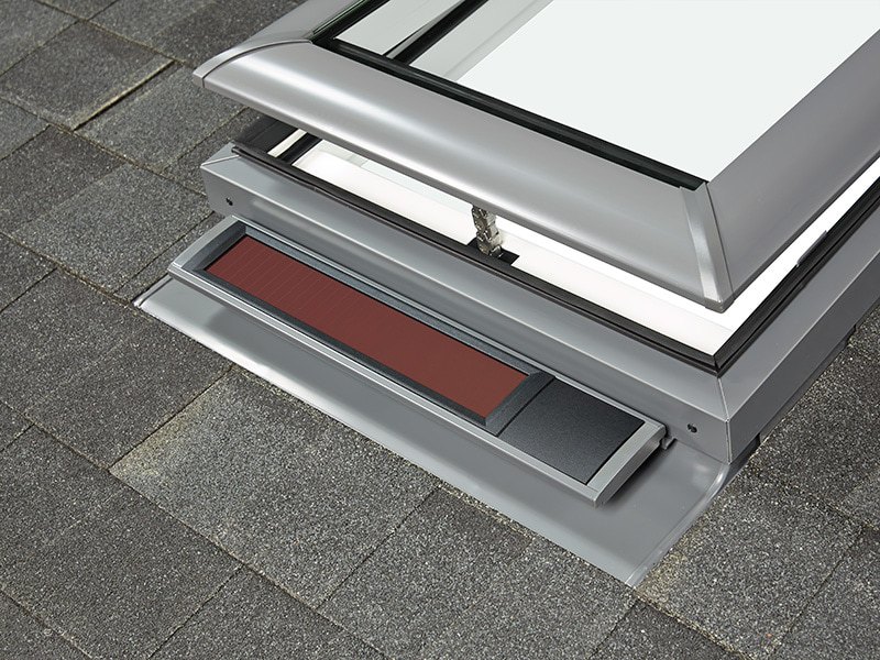 The VELUX Manual “Fresh Air” Skylight is a simple, straightforward, and stunning as they come. Rather than using electric or solar-powered components, this skylight opens and closes by hand with a smooth turning handle for in-reach applications and a rod for out‐of‐reach ones.